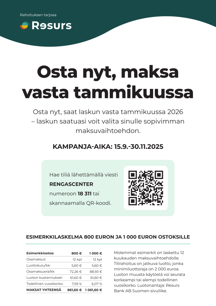 Talven turvallisin diili! Rullaa talveen turvallisesti Continentalin talvirenkailla. Osta 18” tai suuremmat renkaat ja saat 80 € GoGift lahjakortin. Lahjakortilla shoppailet sadoissa eri verkkokaupoissa. Kampanja on voimassa 3.10–16.11.2025.